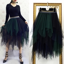 2017春装新款韩版时尚撞色拼接不规则多层蛋糕百搭网纱半身裙潮女