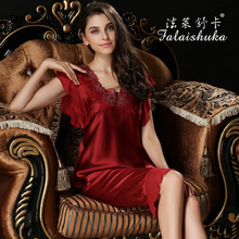 法莱舒卡春夏真丝睡衣女套装短袖丝绸家居服大码纯色桑蚕丝两件套