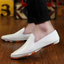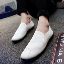 春夏季韩版低跟男生鞋子男士套脚豆豆鞋车缝线休闲商务纯色小皮鞋