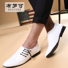 布罗可春季男士休闲皮鞋白色系带潮流尖头男鞋子英伦透气婚鞋男
