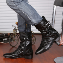 英伦高筒尖头长靴休闲雪地男靴子加绒靴高帮男鞋马丁靴增高5厘米