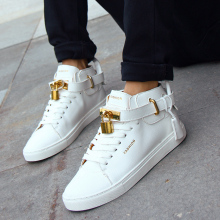 春秋高帮鞋小白鞋锁头情侣鞋内增高社会小伙gz休闲板鞋男学生鞋子