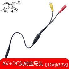 狼蛛正品AV视频莲花头DC电源母头转三芯宝马头带降压线12V转3.3V