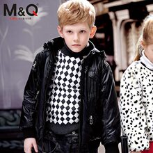 MQ大眼蛙童装秋冬款男童儿童皮衣外套连帽子休闲衫黑色厚外套