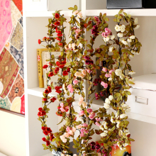 美宜空间 韩式小玫瑰花藤仿真花/藤蔓条挂墙壁空调管道装饰花藤条