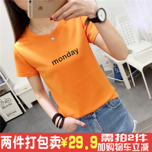 买一送一 二件29元 韩版夏装新款白色卡通字母短袖t恤女体恤衫潮