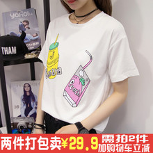 买一送一 29.9元两件短袖t恤女夏季韩版宽松上衣打底衫卡通印花女