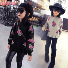女童毛衣套头加厚秋冬装鱼尾摆 儿童针织衫纯棉长袖圆领休闲外套