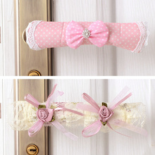 满28元包邮田园风格韩版布艺蕾丝加厚门把套长护手套把手罩