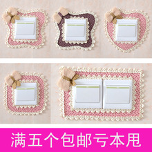 满五个包邮田园布艺开关贴插座贴艺蕾丝开关套蕾丝开关套布艺蕾丝