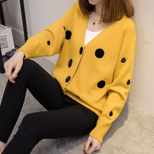春装新款女装韩版学院风圆点刺绣针织开衫宽松大码毛衣外套潮上衣