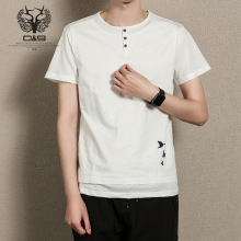 夏天男士亚麻短袖t恤男潮流韩版日系学生修身圆领上衣半袖体恤男