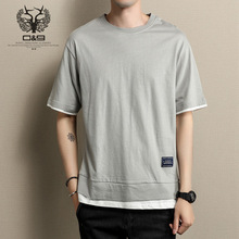 男士夏季2017新款五分袖短袖t恤男韩版假两件宽松圆领半袖体恤潮