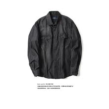 潮男休闲复古黑色衬衫 日系男士简约牛仔衬衣