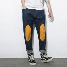 春季新款男生牛仔裤拼接宽松修身青年百搭日系休闲牛仔长裤男潮