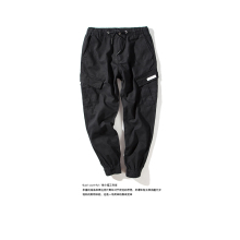 地小超春新品下装 日系简约工装系带男士休闲长裤 青年黑色小脚裤