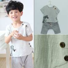 宝宝纯棉t恤 男童棉麻圆领上衣 韩版竹节棉短袖童装2016新款夏装