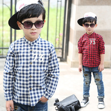 男童格子立领衬衫 韩版纯棉中童潮童衬衣2017春装新款上衣