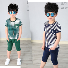 男童童装2017新款夏装短袖套装宝宝 儿童条纹夏季纯棉T恤两件套
