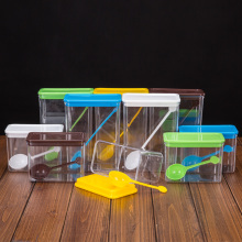 塑料方形密封罐果粉盒 透明储物罐咖啡奶茶店专用送勺子