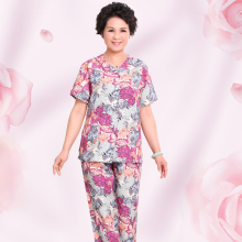 中老年睡衣女夏季绵绸妈妈短袖睡衣中年中裤大码人造棉家居服套装