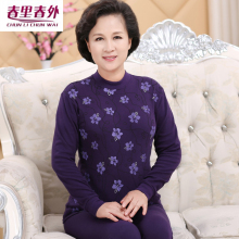 纯色老人秋衣秋裤女保暖内衣中老年中高领纯棉妈妈秋冬棉毛衫套装