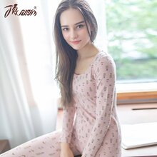 顶瓜瓜内衣女修身薄款棉质大圆领长袖甜美印花内搭秋衣秋裤套装