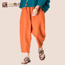 吉丘古儿亚麻灯笼裤女裤 灯笼裤女夏宽松棉麻 民族风灯笼裤女棉麻