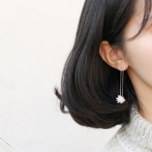 彩顿饰品 日韩新款S925纯银长耳线 冰晶雪绒花耳钉送同学闺蜜