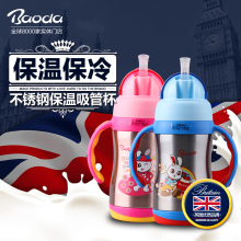 宝德宝宝保温杯儿童304不锈钢带手柄吸管杯婴儿水壶幼儿保温水杯