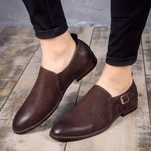 英伦复古擦色牛皮男鞋时尚尖头小皮鞋潮鞋套脚男士休闲皮鞋男真皮