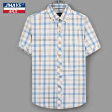 JIHAYE 中年男士格子衬衫夏季新款翻领纯棉短袖T恤爸爸装衬衣父亲