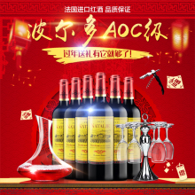 法国进口波尔多AOC红酒 爱慕尔娜特莉干红葡萄酒6瓶 送高端酒具