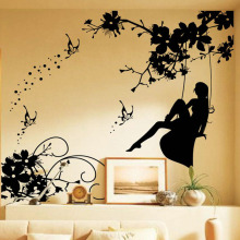 奈纳伦墙贴纸 沙发背景超大剪影 客厅电视背景卧室墙壁贴少女秋千
