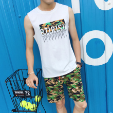 2017夏男店主风休闲针织港风无袖背心短裤日系 运动套装 汗马甲潮