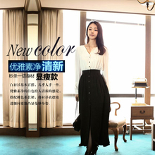 2017春季新款黑白拼接显瘦长袖时尚雪纺连衣裙OL淑女连衣裙女