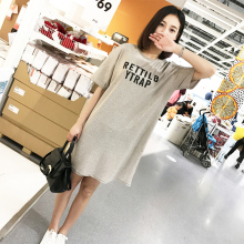 欧洲站夏装女2017新款圆领宽松中长款亮丝字母套头T恤连衣裙 女