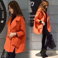 春秋韩版毛呢外套女韩范中长款开叉加厚百搭斗篷显瘦时尚呢子大衣