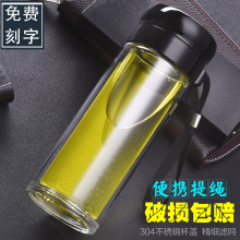 古琦双层玻璃杯子茶杯带盖过滤提绳便携男士办公口杯泡茶水杯耐热