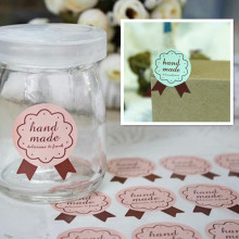 300枚华彩批发烘焙贴不干胶贴纸勋章封口贴粉色绿色hand made贴纸