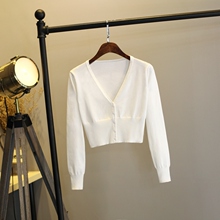 春秋新款高腰针织开衫女韩版修身简约长袖超短款针织衫女毛衣外套