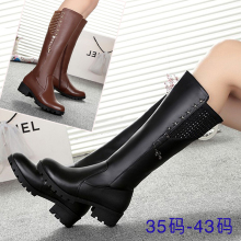 新款冬季真皮高跟长筒靴子防水台粗跟及膝靴皮棉靴高筒马靴女鞋子