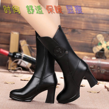 2016秋冬季新款女靴真皮高跟中筒靴子侧拉链妈妈加绒棉靴女鞋子潮