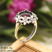925纯银民族风开口女式戒托泰银复古镶嵌琥珀戒指托10*10