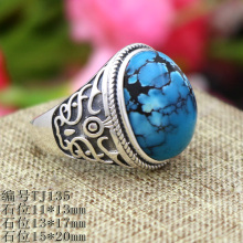 S925纯银复古戒指空托定制镶嵌琥珀戒指托男式戒托绿松石戒指环
