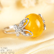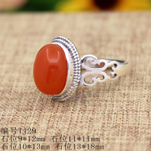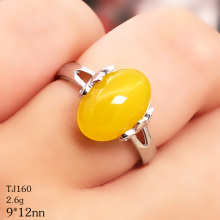 S925银纯女士戒指空托DIY镶嵌蜜蜡琥珀宝石开口戒托银托9*12