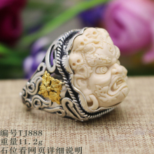 S925银戒托空托DIY男士戒指托定制泰银戒托镶嵌蜜蜡兽面戒指托