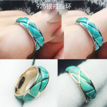 s925纯银戒指空托戒指环镶嵌绿松石蜜蜡琥珀戒指托情侣戒托
