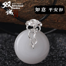 925纯银扣子 玉坠夹扣如意平安扣diy配件吊坠琥珀蜜蜡卡扣 D5190