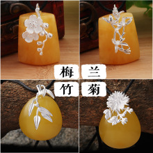 925纯银扣子 玉坠夹扣梅兰竹菊diy配件吊坠扣头琥珀蜜蜡卡扣
